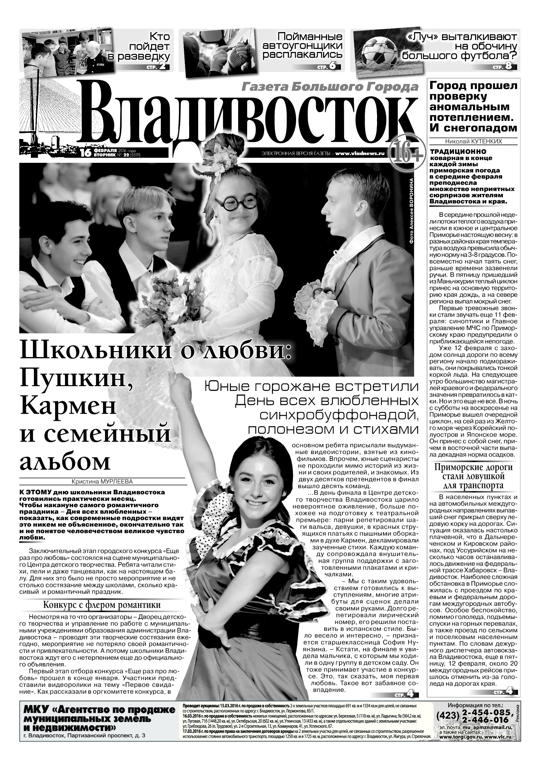 Электронная версия газеты "Владивосток" №3886 (22) от 16.02.2016