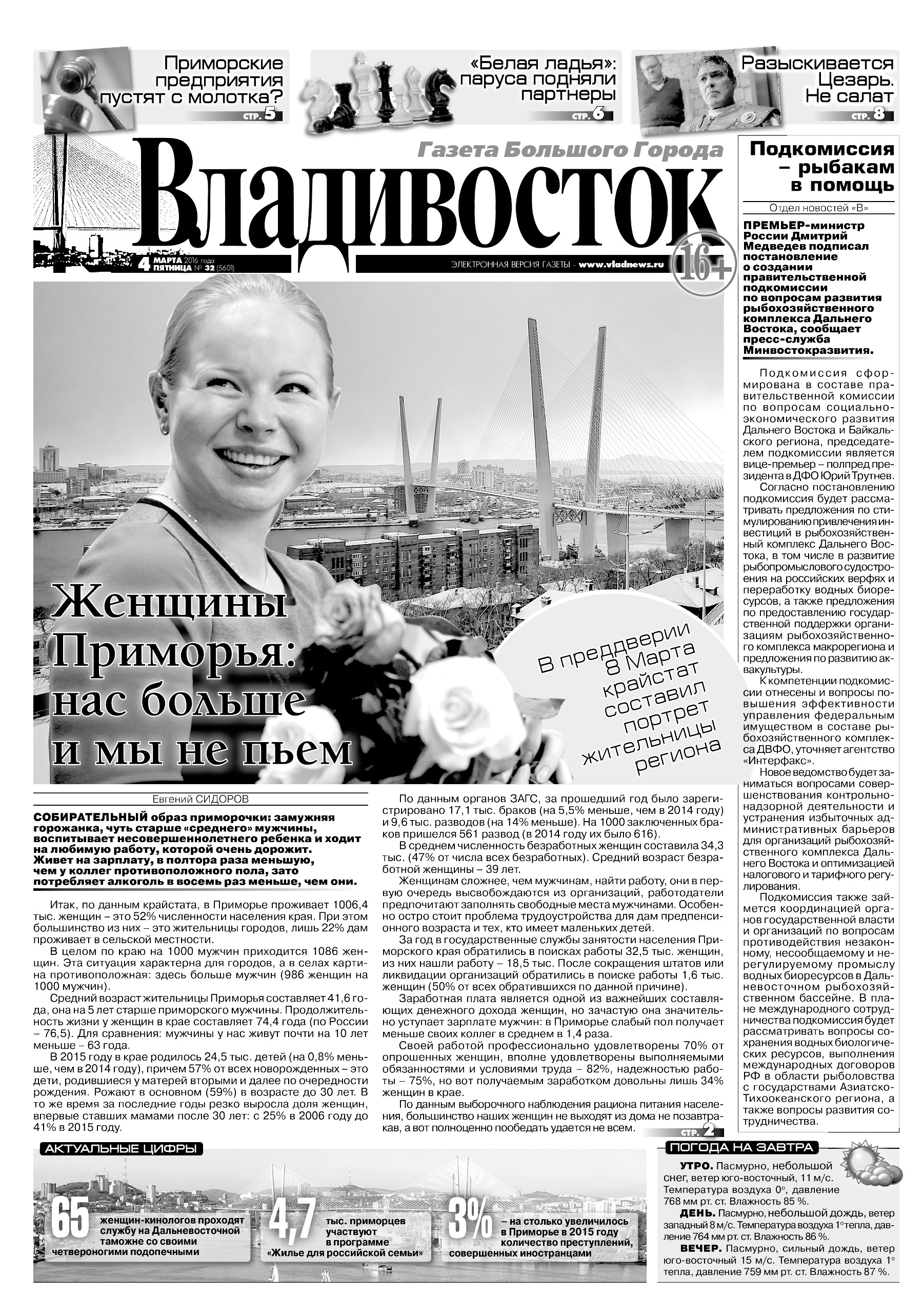 Электронная версия газеты "Владивосток" №3896 (32) от 04.03.2016