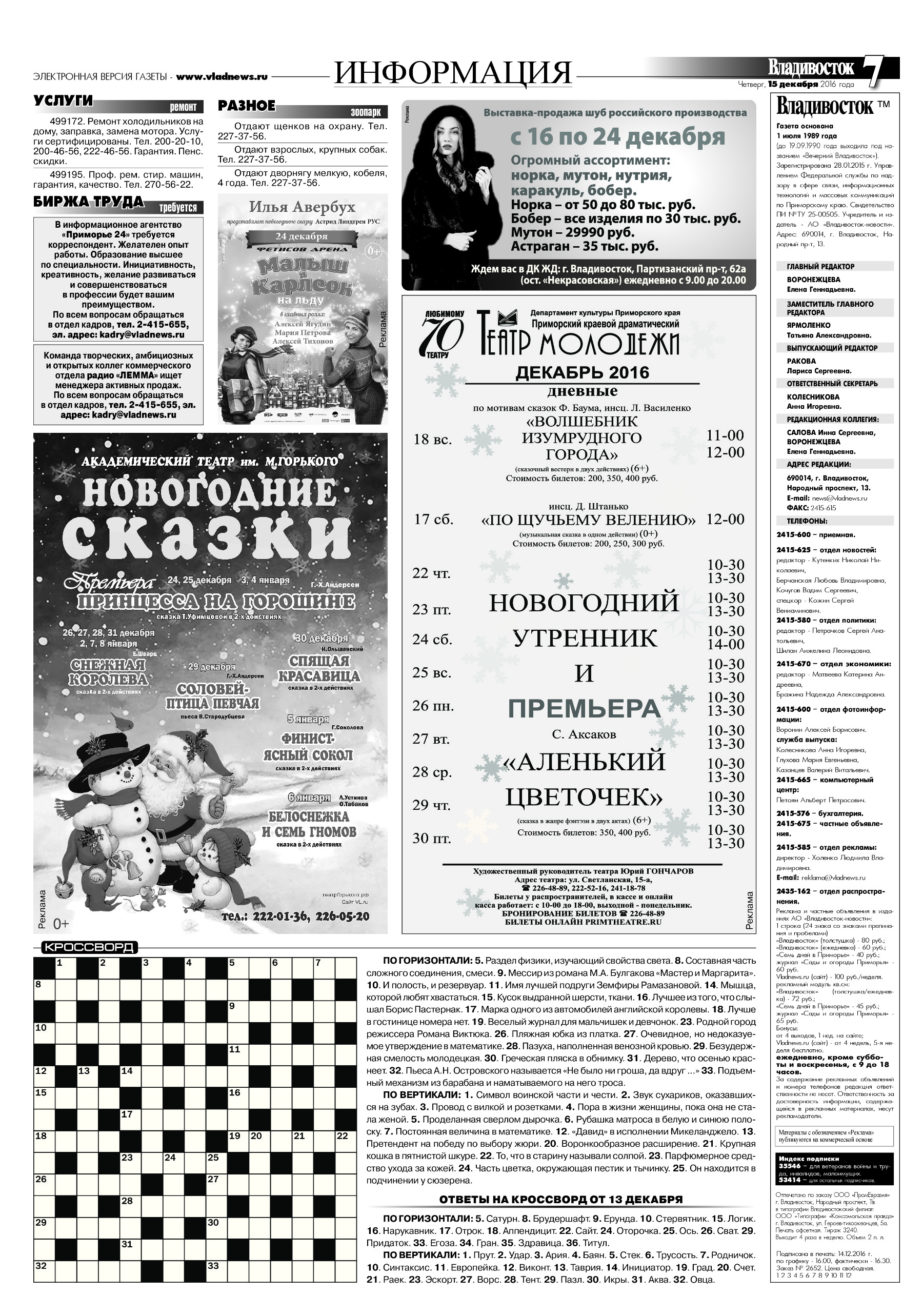 Электронная версия газеты "Владивосток" №4054 (190) от 15.12.2016