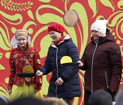 А чтобы праздник надолго запомнился, работали семь тематических фотозон: «Русская изба», самовары, матрешки, балалайки и другие. Можно было запечатлеть себя на этом фоне, а также сфотографироваться с русскими красавицами, скоморохами, лоточниками.