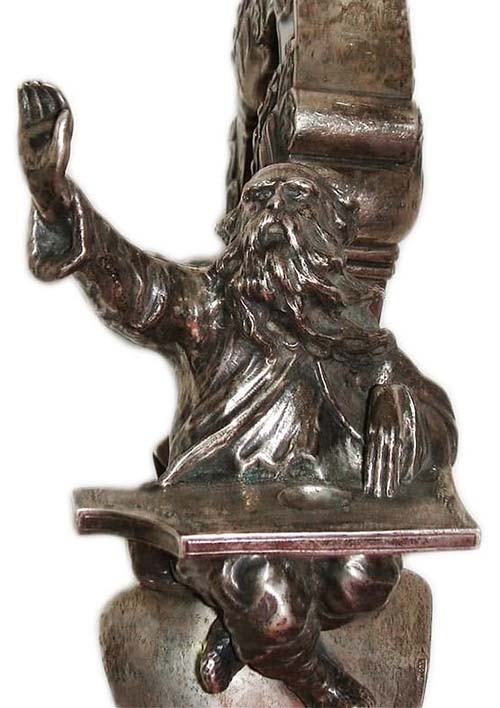 На носу ладьи разместилась фигура древнерусского певца и сказителя Баяна, играющего на гуслях. Он не раз упоминается в «Слове о полку Игореве», известнейшем памятнике древнерусской литературы. Согласно одной из трактовок образа певца Баян перевозит на ладье души погибших воинов в мир Нави, сопровождая путь погребальным пением. Возможно, обрамление хрустальной вазы-ладьи, на носу которой сидит Баян, символизирует погребальную ладью, которая имела широкое распространение в культуре Древней Руси.