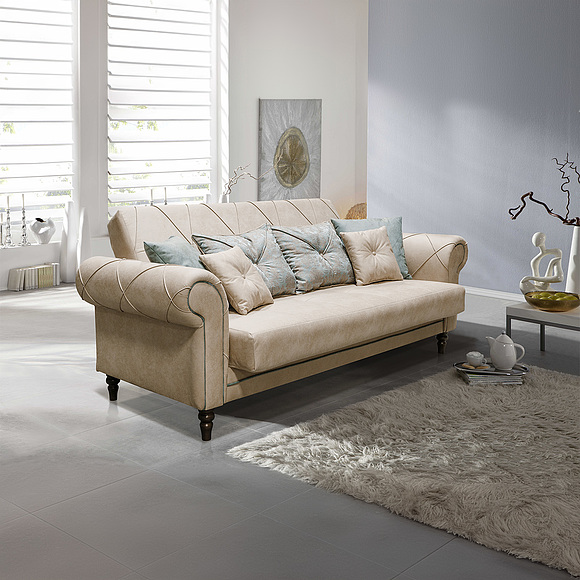 - Для классического интерьера подойдут диваны с обивкой из кожи или жаккарда, с резными элементами и декоративными подушками.