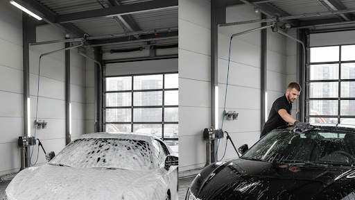 Если есть доступ к теплому воздуху или турбосушке, это дополнительно снижает риск подтеков и разводов, особенно в зонах зеркал, молдингов и решеток.