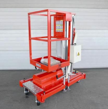 - Компактность. Мачтовые подъемники занимают минимальную площадь, что позволяет использовать их в ограниченном пространстве, например, в складских помещениях с узкими проходами, на строительных площадках с высокой плотностью застройки или в торговых центрах.