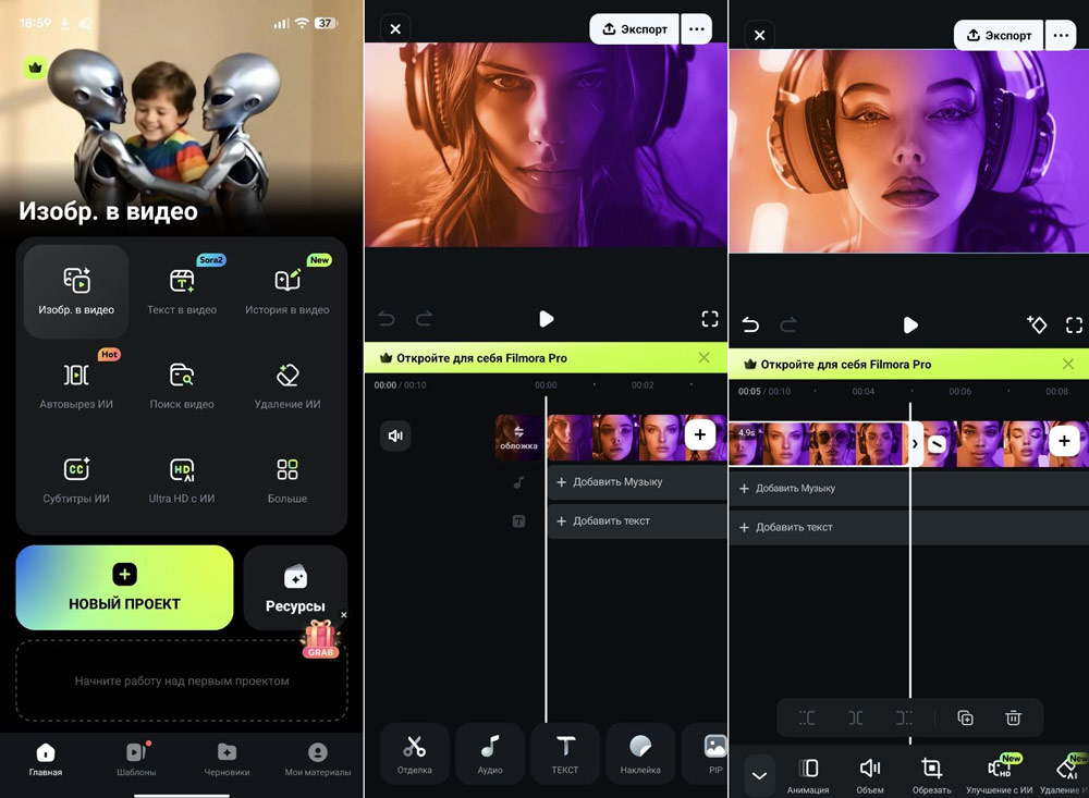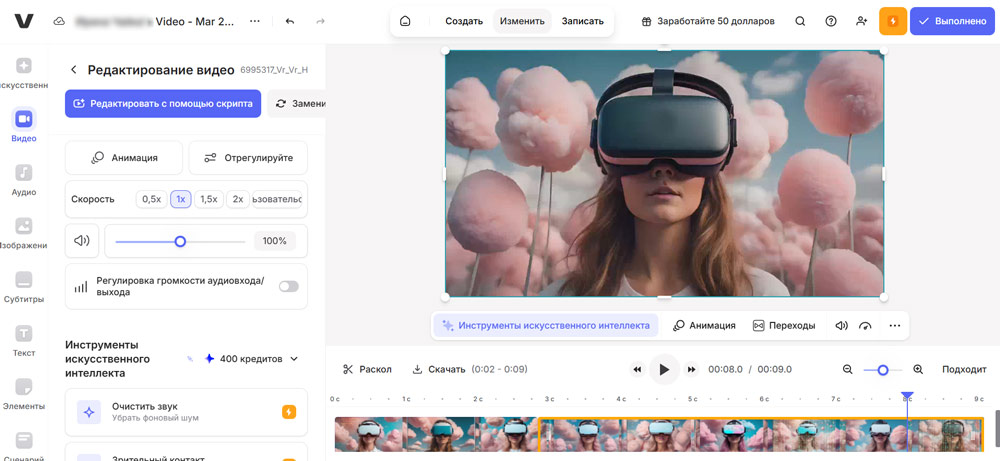 - есть ИИ-инструменты для быстрого удаления фона, создания субтитров и т. д.