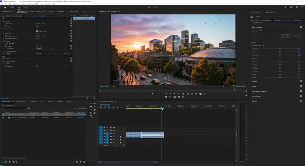 Это профессиональное ПО для монтажа, где можно работать с моушен-графикой, цветокоррекцией и звуком. Однако пакетного рендера, как в предыдущем инструменте, здесь нет, если не устанавливать дополнительное расширение Media Encoder. Поэтому придется разрезать клип на части и экспортировать каждую по отдельности.